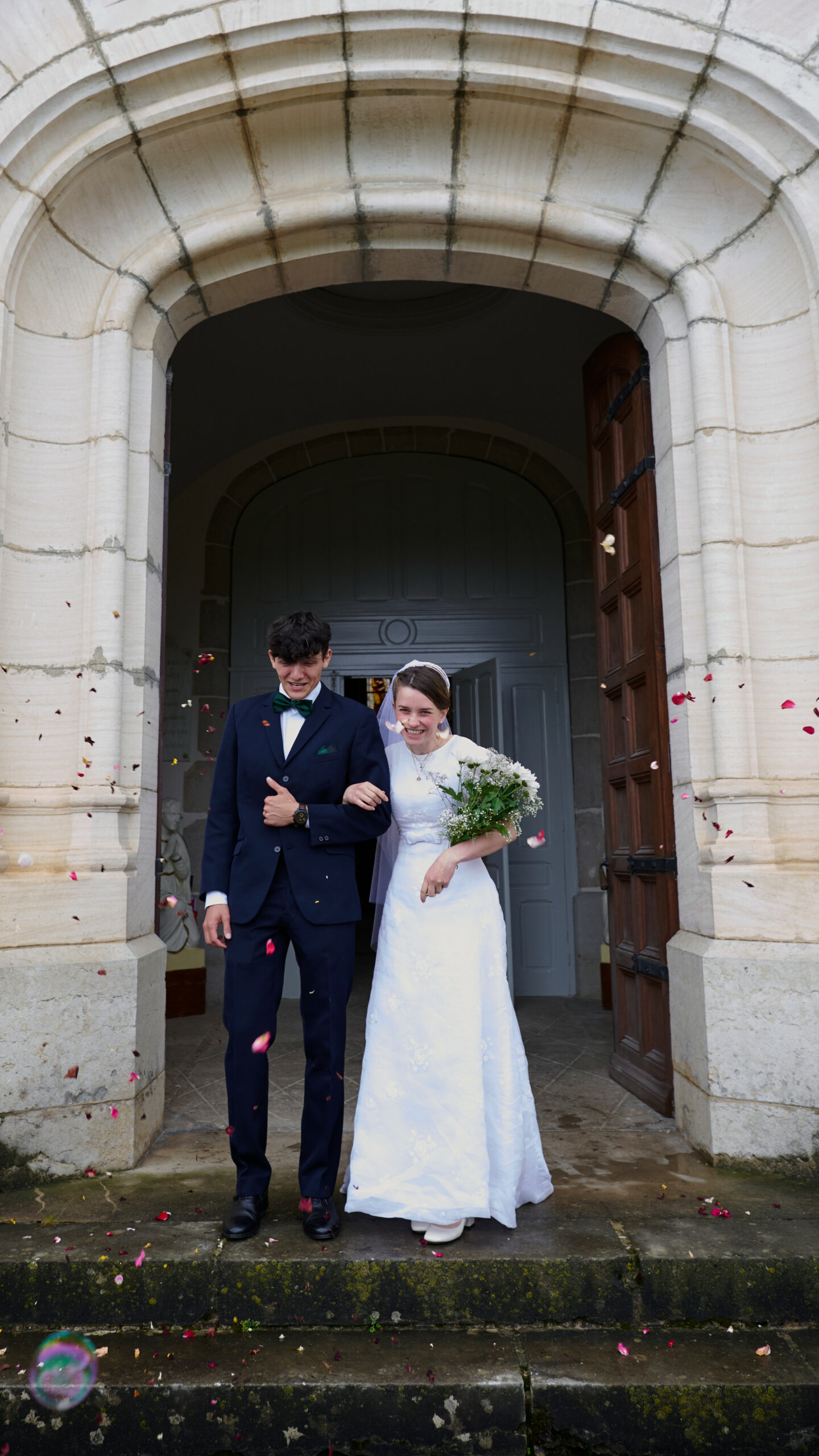 Après l’échange des vœux et la bénédiction de cette union réalisés, nos tous jeunes mariés sortent éclairés par une nouvelle lumière